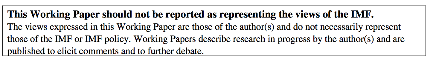 Poikkeuksena viittausten puutteeseen on kohdan tärppilistan kohdan 9 väite, että ”IMF on mallintanut” ehdotuksen mukaisen reformin ja todennut sen edulliseksi. Ensiksikin, siteerattu juttu on ilmestynyt IMF:n työpaperisarjassa, jossa julkaistaan kaikenlaista, ei mitenkään IMF:n hyväksymää eikä vielä myöskään tiedeyhteisön hyväksymää kamaa. Paperin kannessa sanotaan, siis täsmälleen päinvastoin kuin kirja väittää:
