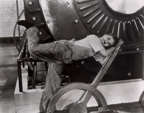Tämä merkintä ei käsittele Charlie Chaplinin loistavaa elokuvaa Nykyaika (1936), vaikka olen siitä yllä olevaa kuvaa käyttänytkin. Kävin nimittäin eilen katsomassa The Social Networkin, eli elokuvan Facebookista. Siinä pohditaan sosiaalisten medioiden, ajatusvarkausten ja digitaalisen jakelun kaltaisia nykyaikaisia teemoja. Elokuva on tehty sadoille miljoonille Facebookin käyttäjille. Jos Facebookia ei ole käyttänyt, The Social Network aiheuttaa pelkkää kummastusta. Ja hyvä niin. Syntynyt tietoyhteiskunta on nimittäin herättänyt kiivaan väittelyn siitä, kuinka suuren osan perinteisestä elämästä on siirryttävä. On kuulemma esimerkiksi hyvä, että pankkiasiat pystyy hoitamaan näppärästi verkossa. Toisaalta on kuulemma taas huono, että sähköjakelu on tappamassa esimerkiksi musiikkilevyjen ja kirjojen kaltaiset esineet. Ja niin edelleen.